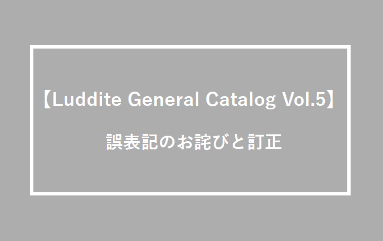 • 【Luddite General Catalog Vol.5】誤表記のお詫びと訂正